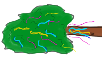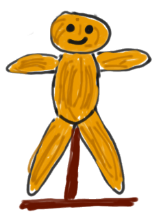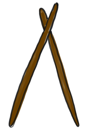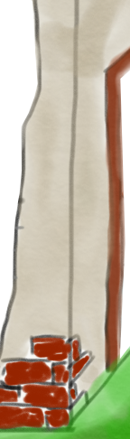 Sieh mal, da liegt der Baum. Hast du schon mal gesehen, wie man ihn stellt? Dafür gibt es so Holz-Dinger, die nennt man übrigends Schwalben. Die bestehen aus zwei Holzstäben, die wie bei einer Schere miteinander verbunden sind.