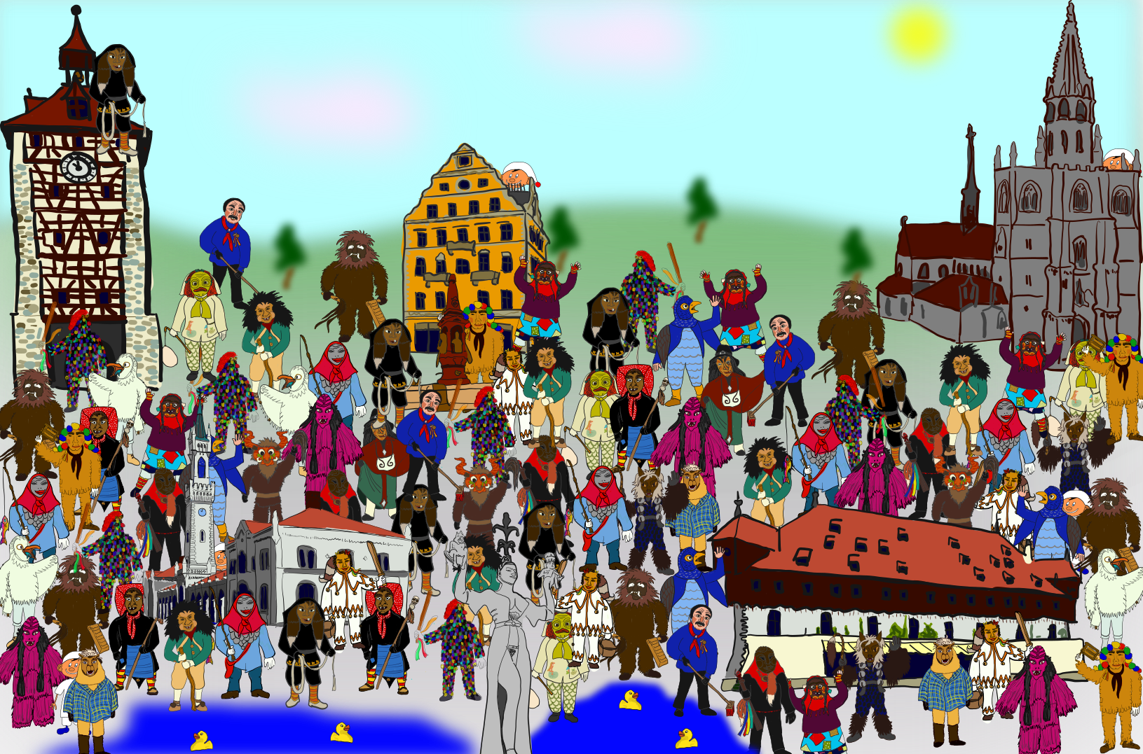 Könntest du mir bitte helfen und sie bunt ausmalen? Deine Eltern drucken sie bestimmt für dich aus. Hänge sie doch danach in dein Fenster, sodass alle Mäschgerle sie sehen können.
