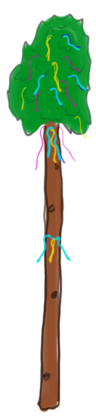 So, jetzt aber genug, nun müssen wir den Baum stellen. Ich glaube, wir schaffen das in 3 Etappen. Wir brauchen dafür immer zwei Mäschgerle, die zusammen eine Schwalbe anpacken können. Kannst du immer zwei passende finden?